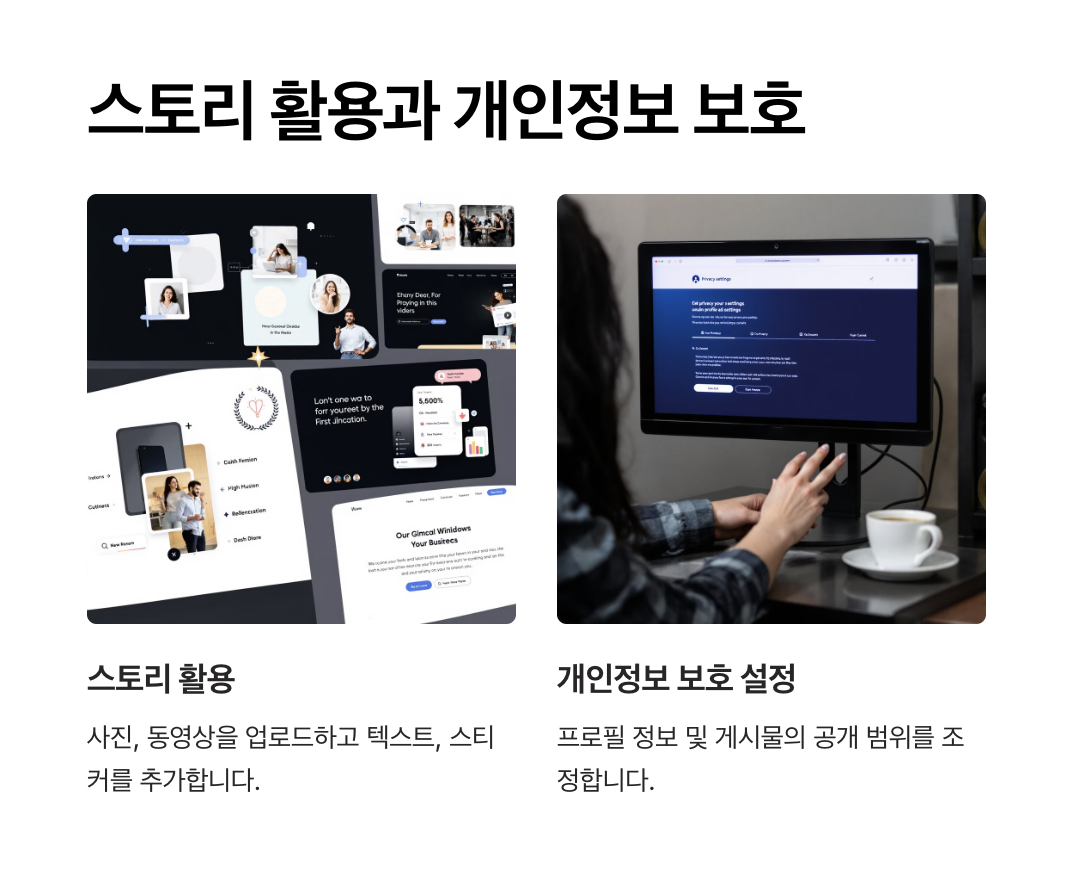 스토리는 24시간 동안만 유지되는 콘텐츠로, 일상을 공유하기에 좋은 기능입니다.