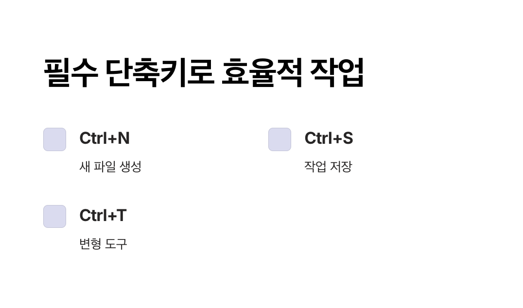 | 5. 포토샵 단축키 공식 가이드 (Adobe) | 자주 사용하는 포토샵 단축키를 정리한 Adobe 공식 가이드로, 초보자가 작업 속도를 높이는 데 유용합니다. |