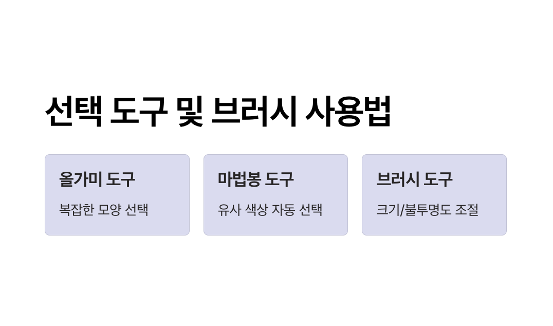 - 자유롭게 선택 영역을 지정할 수 있는 도구로, 복잡한 모양의 이미지를 정확히 선택하는 데 유용합니다.