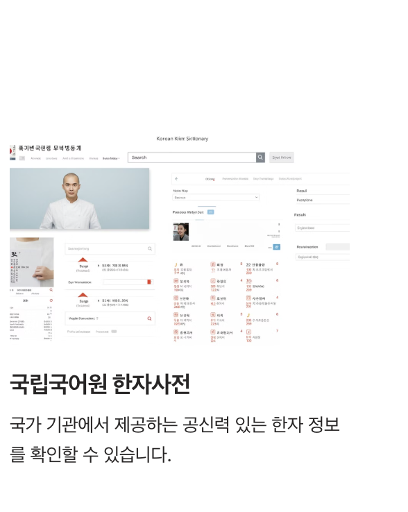 | 2. 다음 한자사전 | 직관적인 UI를 갖춘 한자 사전으로, 필기 입력 기능을 제공하며 한자의 발음과 뜻을 쉽게 검색할 수 있습니다. |
