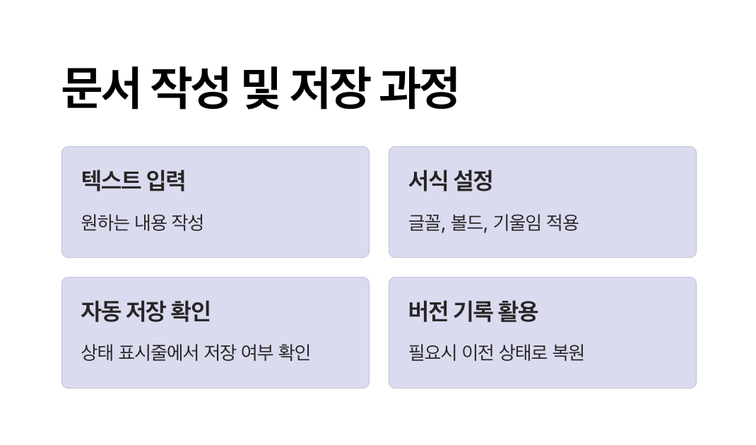 - 문서 상단 제목을 수정할 때도 자동 저장되니, 제목 변경 후 바로 닫아도 안전합니다.