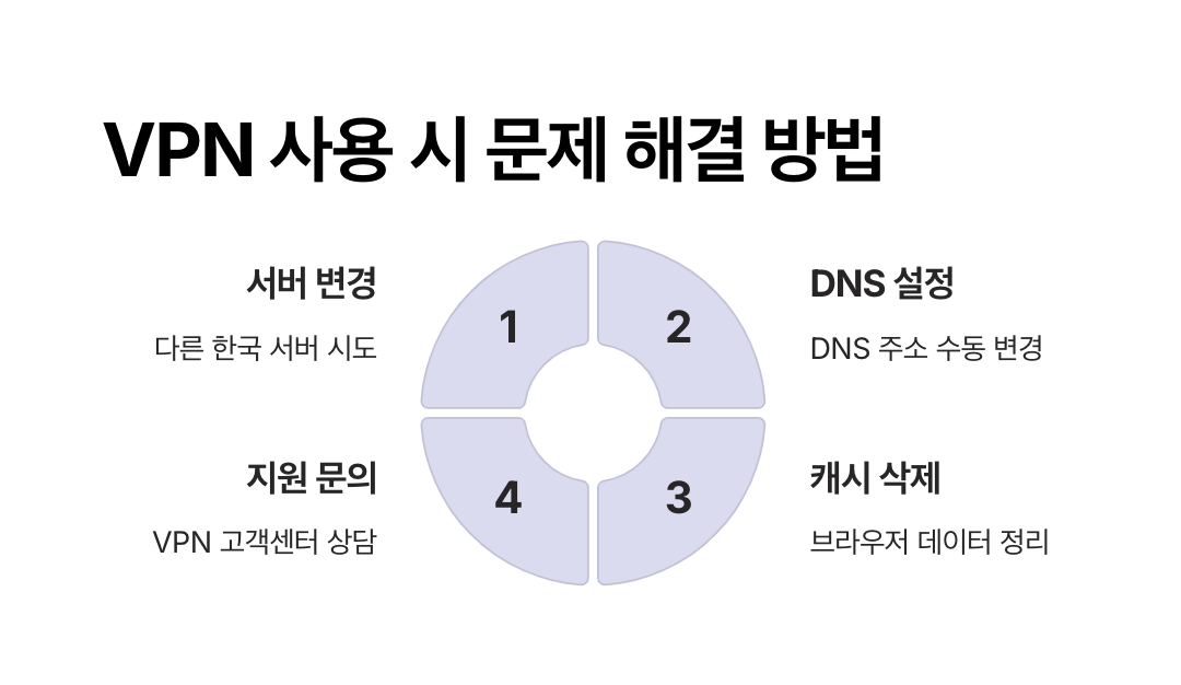- 다른 서버로 변경: 동일한 VPN 내에서 다른 한국 서버로 변경 후 재접속.