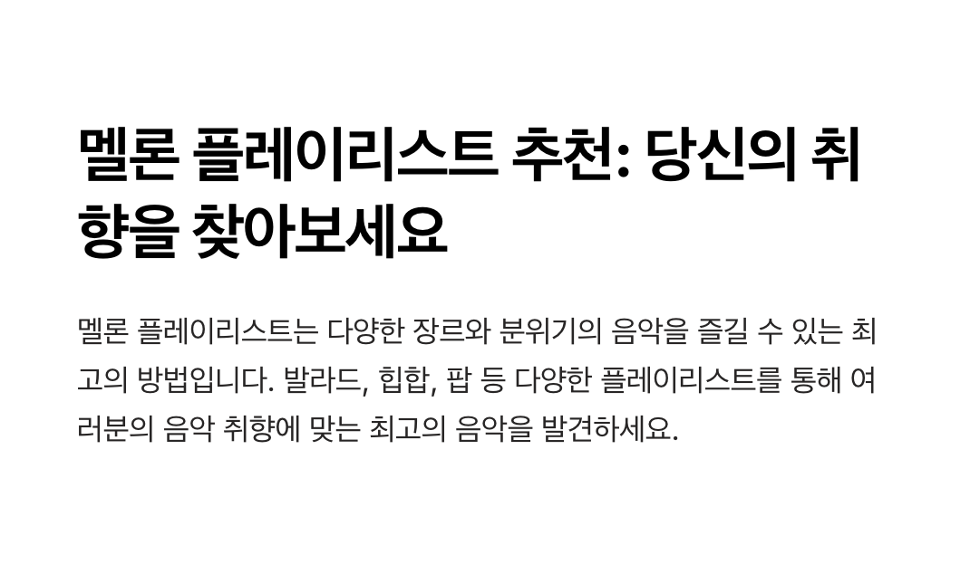 - 감성적인 날에는 발라드, 활기찬 날에는 힙합 등 기분과 상황에 맞는 음악을 선택하세요.