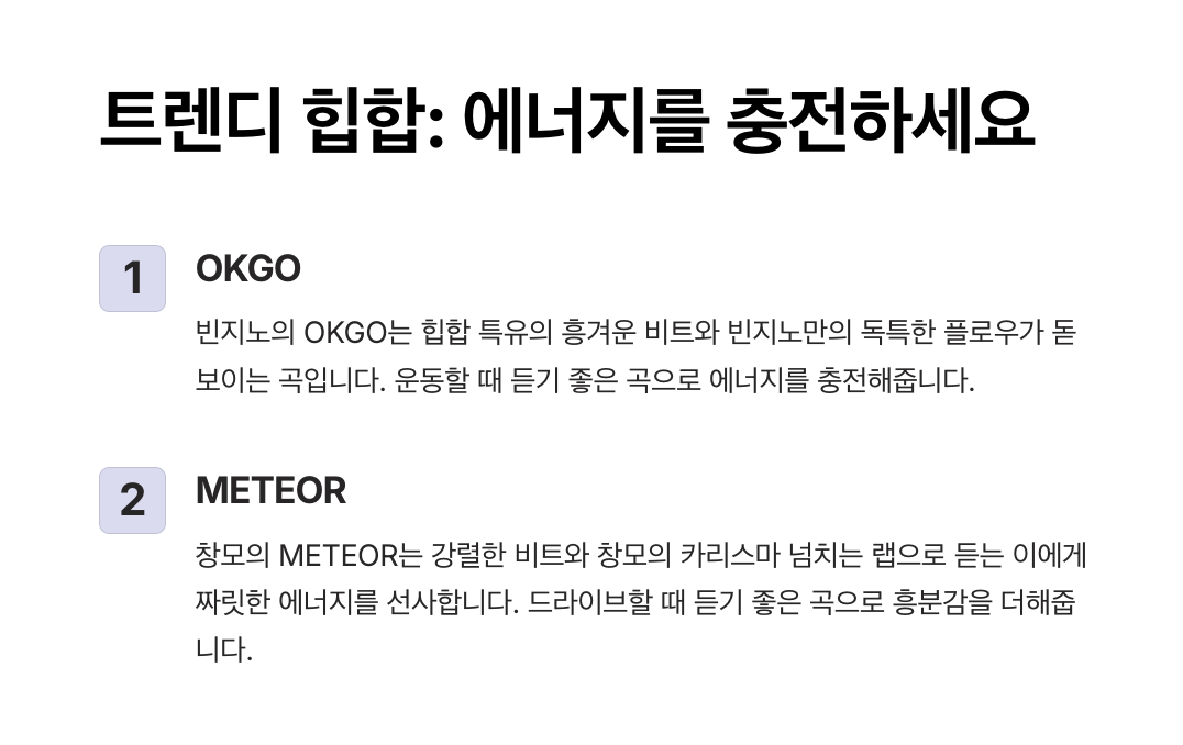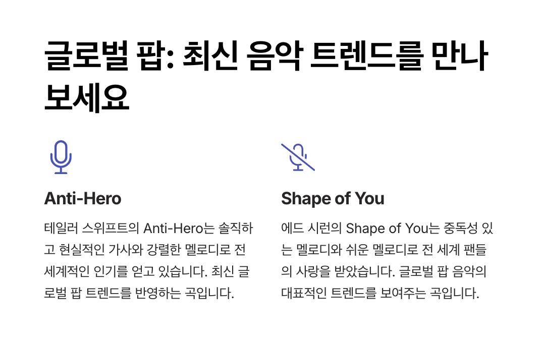 - 추천 플레이리스트: "글로벌 팝 차트 베스트 10"
