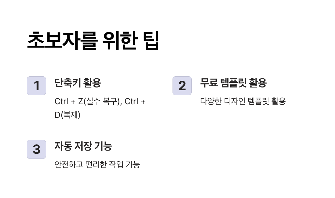 - Canva의 무료 템플릿은 수천 개 이상이 제공되며, Pro 버전을 사용하지 않아도 충분히 활용 가능합니다.