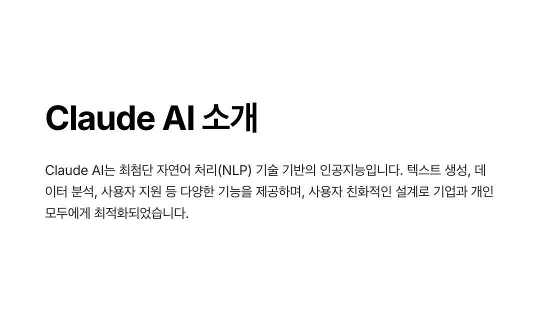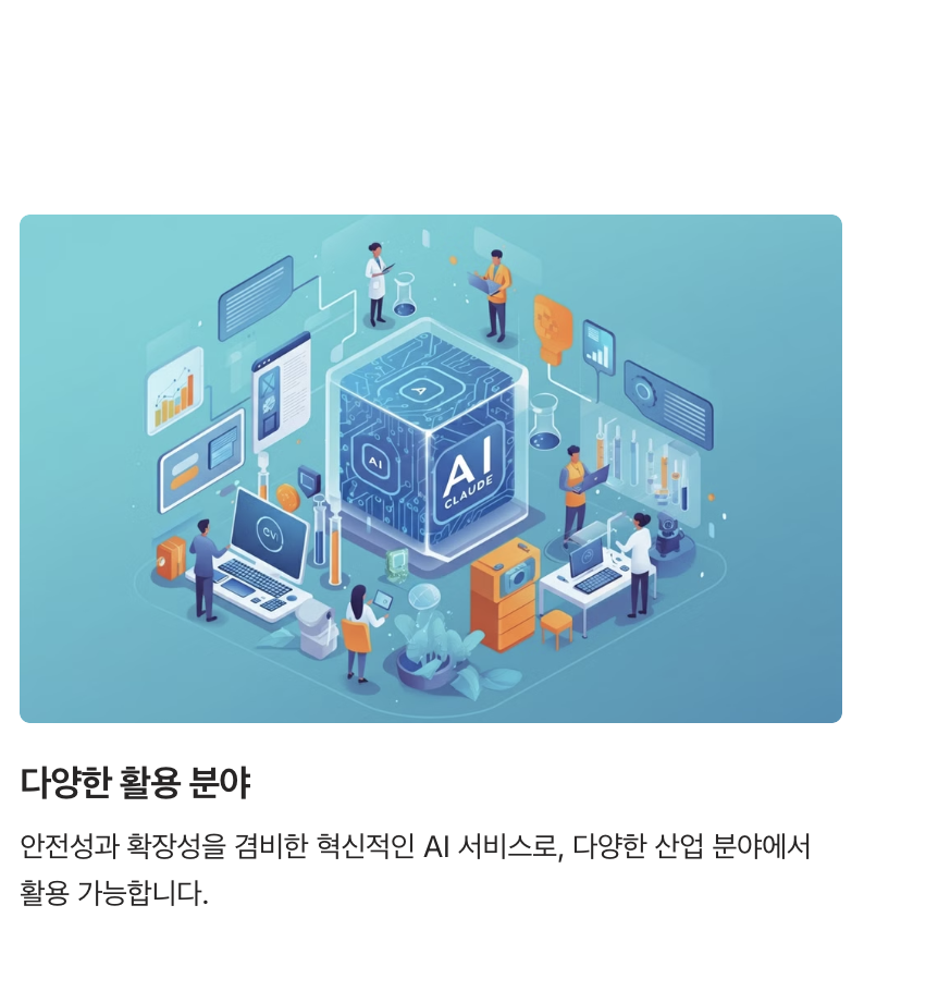 Claude AI는 단순히 텍스트를 생성하거나 데이터를 분석하는 도구를 넘어, 더 나은 사용자 경험과 혁신적인 결과를 제공하는 AI 서비스입니다. 강력한 자연어 처리 기술과 직관적인 인터페이스, 그리고 다양한 산업에서 활용 가능한 확장성을 통해 AI 기술의 새로운 표준을 제시하고 있습니다.