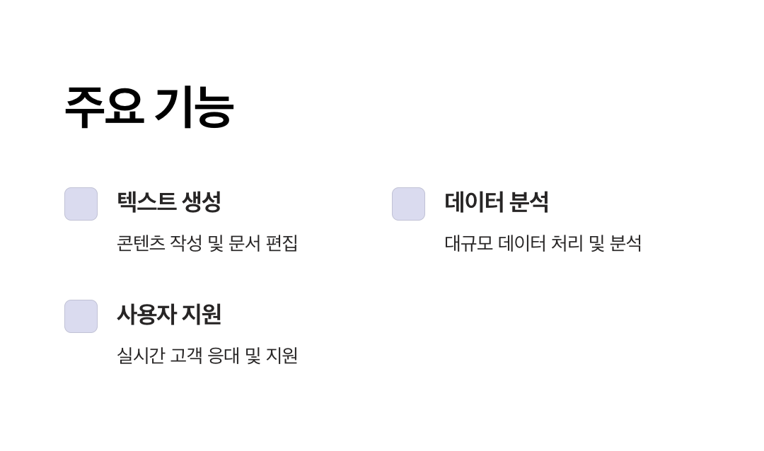 - 문서 편집: 문법 교정, 맞춤법 수정, 글의 톤 조정 등 문서 품질 향상.
