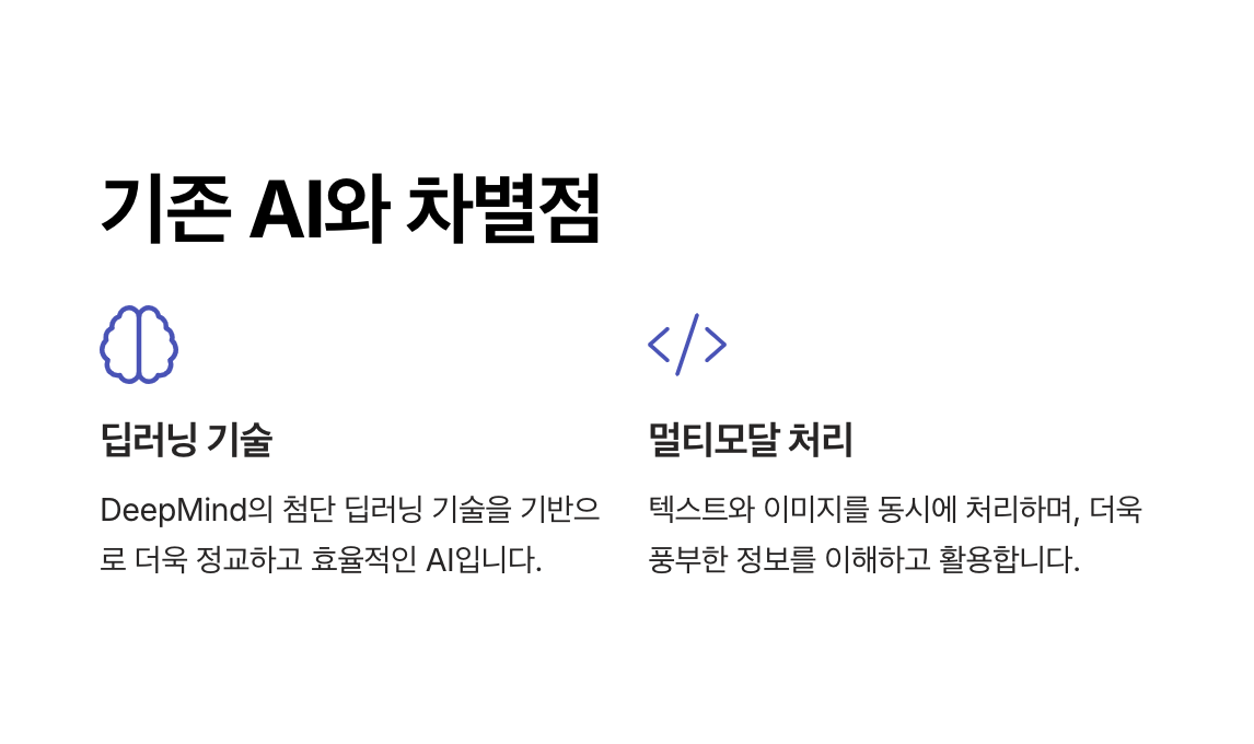 - Google Gemini는 DeepMind의 첨단 AI 기술을 활용하여 기존 모델보다 더 정교하고 효율적으로 설계되었습니다.