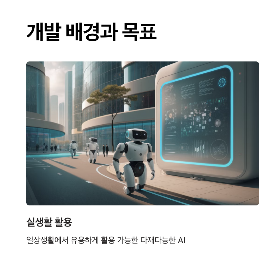 - AI 기술을 더욱 인간 친화적으로 발전시키고, 실생활에서 쉽게 활용할 수 있는 도구로 만들기.