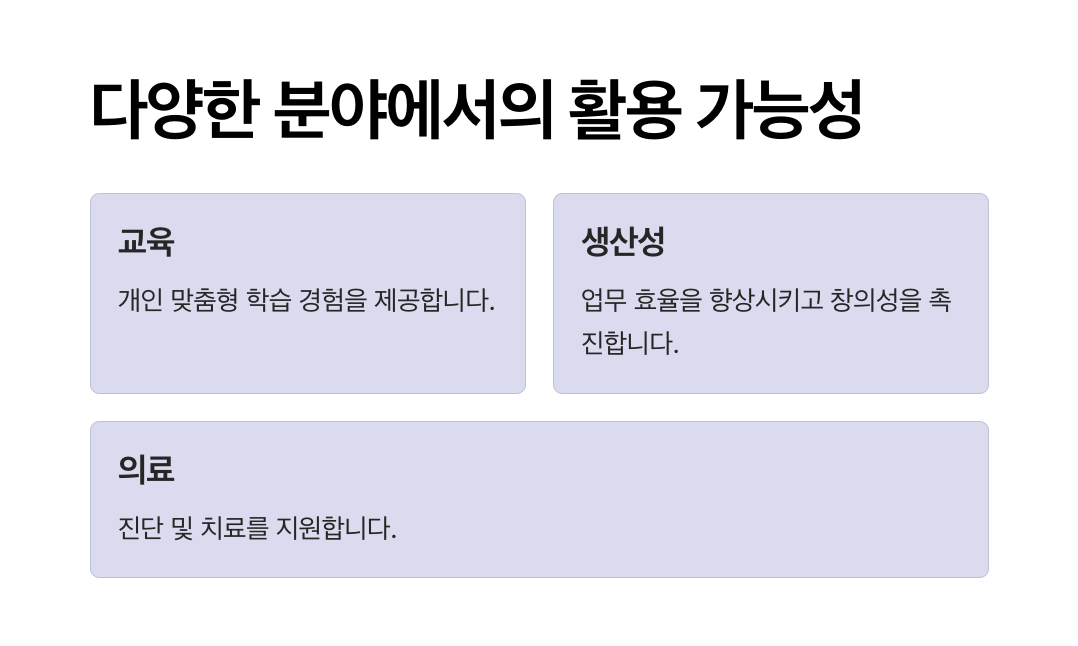 - 의료 데이터 분석, 환자 상담 지원 등 헬스케어 분야에서 활용.