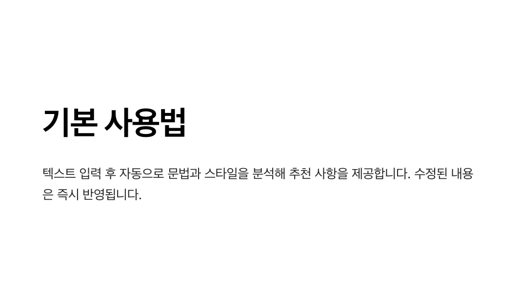 - 실시간 교정 기능: 추천 사항을 클릭하면 수정된 문장이 즉시 반영됩니다.