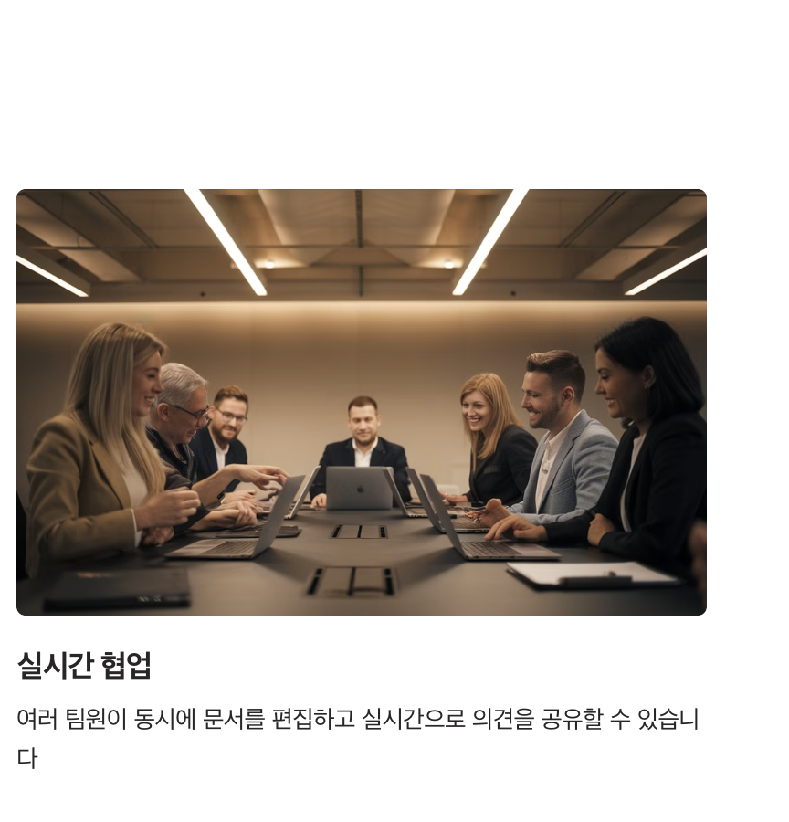 - 여러 사용자가 같은 문서를 동시에 편집하며, 변경 사항이 실시간으로 반영됩니다.