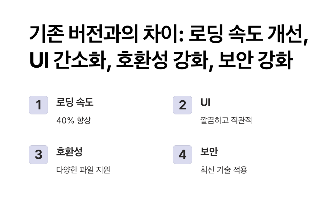 - 성능 최적화: 로딩 속도와 파일 처리 속도가 평균 40% 이상 개선되었습니다.