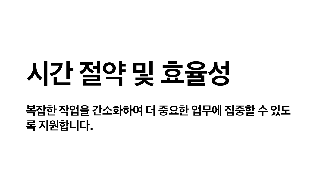 - 수작업으로 처리하던 작업들을 자동화하여 업무 시간을 대폭 줄입니다.