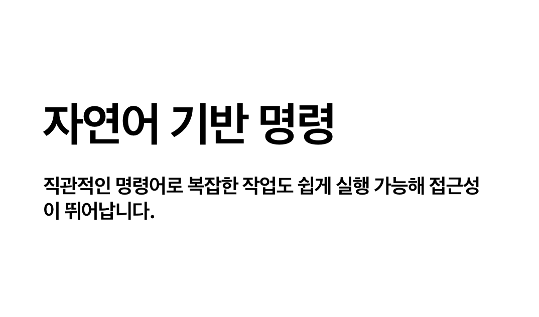 - 복잡한 명령 없이 간단한 자연어 명령만으로도 기능을 실행할 수 있어 직관적이고 접근성이 뛰어납니다.