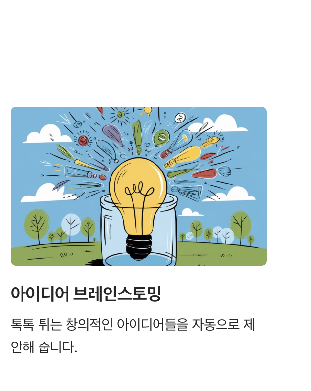 - 창의성 보조: 아이디어 생성과 글쓰기 보조로 창의적인 작업 지원.