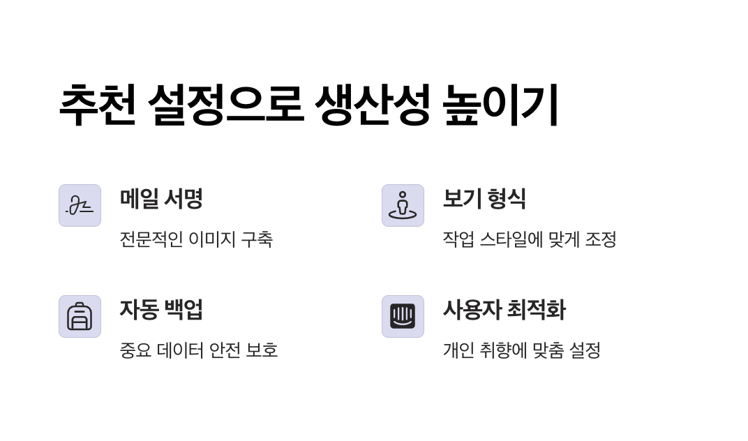 Outlook 기능 소개를 통해 나에게 꼭 맞는 설정을 찾아보시고, 모바일과 PC 모두에서 일관된 업무 환경을 만들어 보시길 바랍니다.