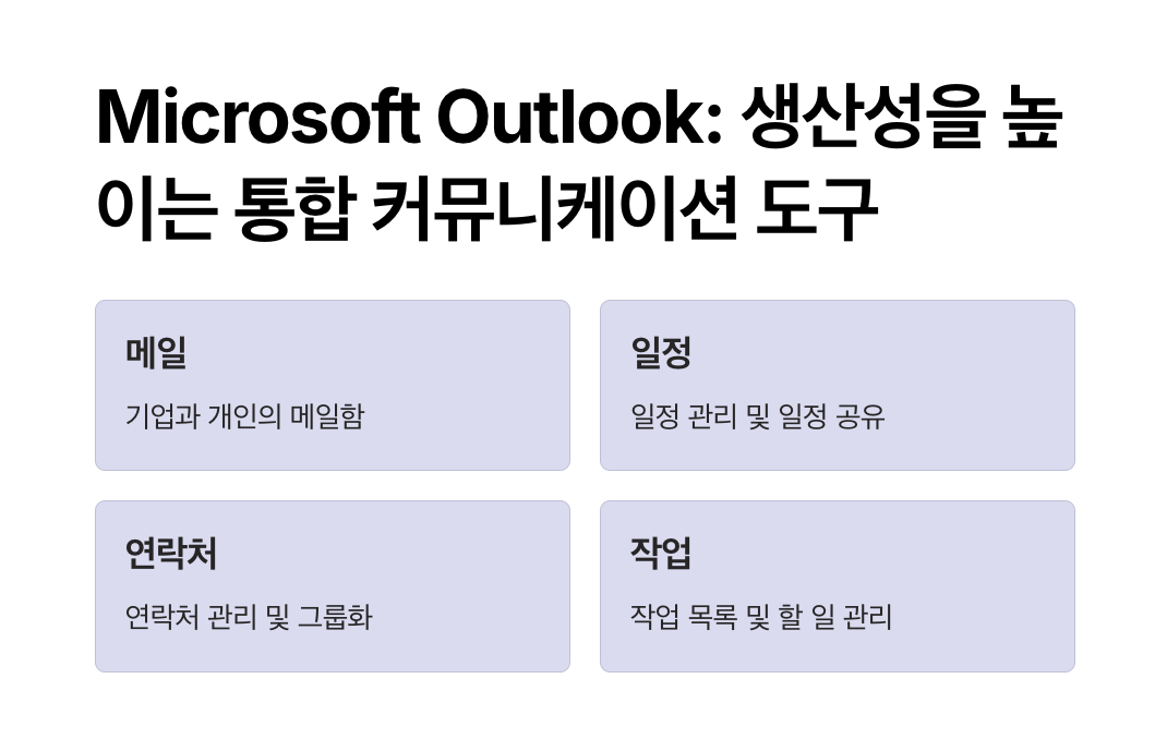 Outlook은 단순한 이메일 프로그램이 아닙니다. 마이크로소프트에서 제공하는 통합 업무 관리 도구로, 이메일을 비롯해 일정, 연락처, 작업(Task) 등을 한 곳에서 관리할 수 있는 강력한 플랫폼입니다.