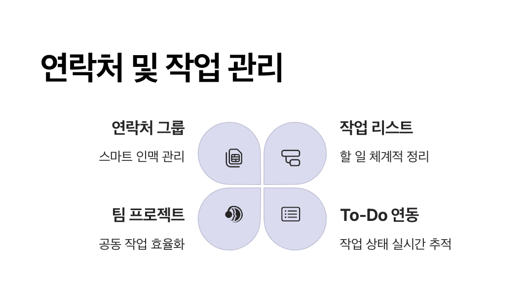 일정, 연락처, 작업까지 한 번에 관리할 수 있는 종합 도구입니다.