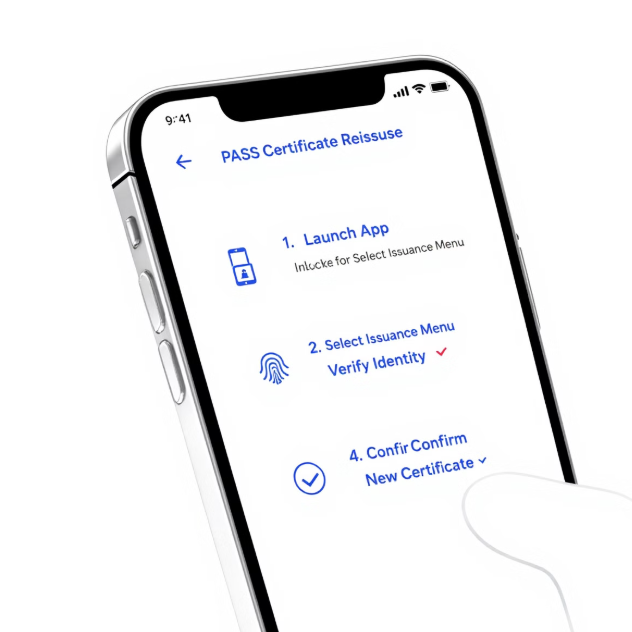 - 인증이 완료되면 새로운 PASS 인증서 자동 발급