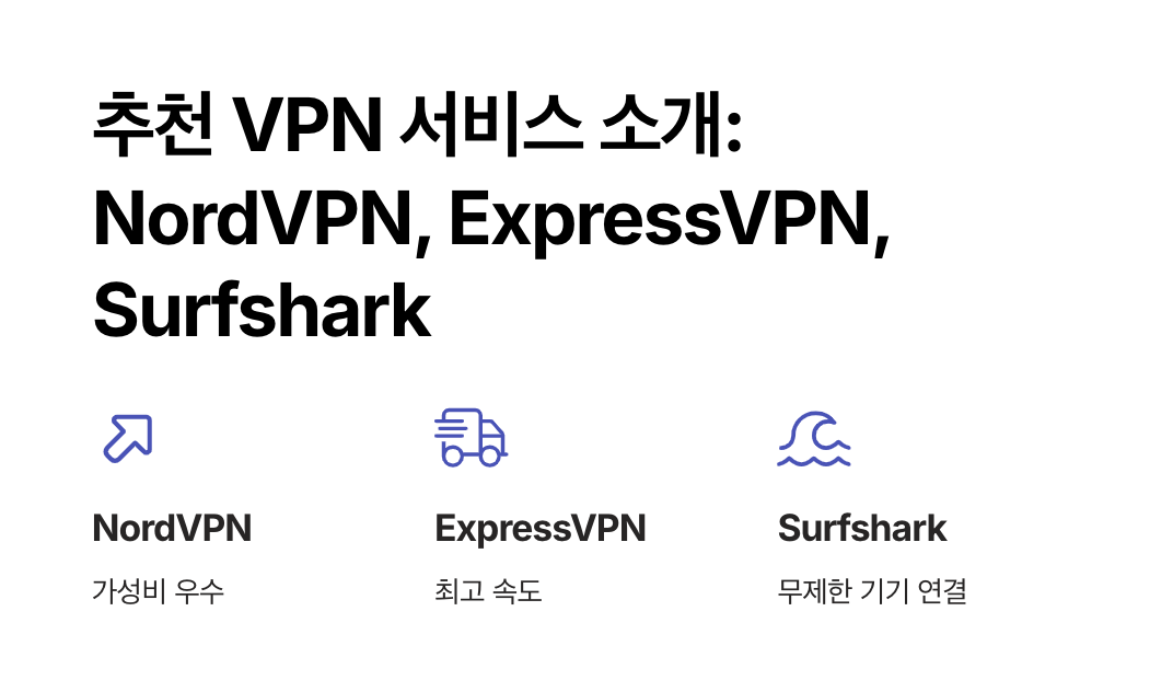 | NordVPN | 빠름 | AES-256 암호화, 넷플릭스 우회 가능 | 월 $3.99~ | 가성비 좋은 글로벌 서버 |